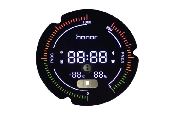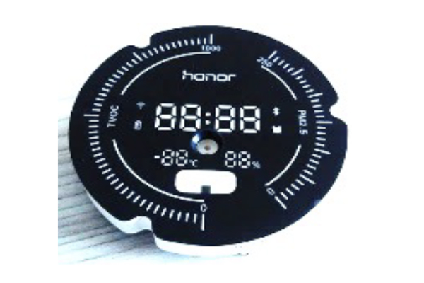 该产品为直插型数码显示屏,产品直径80mm,采用固晶焊线工艺实现圆周极细笔段的均匀发光。